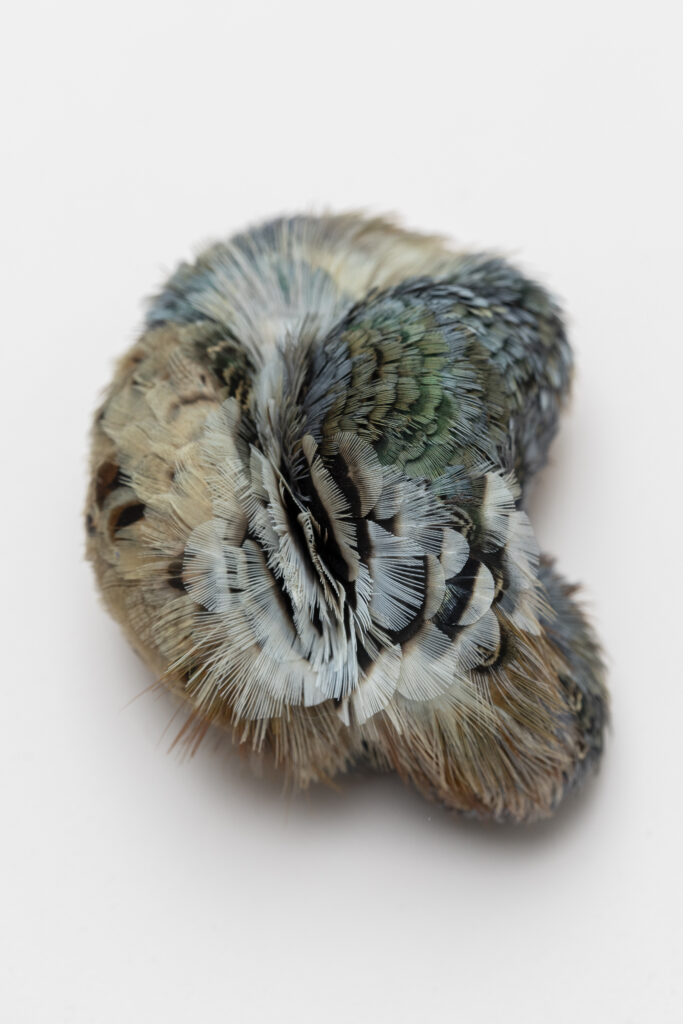 Marion Hawecker est plumassière. A la croisée entre pratique artistique et savoir-faire artisanal, Marion a fait de la plume d’oiseau son médium de prédilection. Elle explore cette matière en développant une production propre de sculptures, bas-reliefs et objets d’art. Elle interroge aujourd’hui dans sa pratique le concept de « Nature » et notre rapport au Vivant, au monde non-humain qui nous environne et avec lequel nous entretenons des connexions conscientes ou non. En parcourant les mythes et sa propre perception elle tisse des fils invisibles entre ces mondes par imitation, mimétisme, analogies de formes et évocations silencieuses à travers différentes formes de production et d’expérimentations autour de la plume d’oiseau.